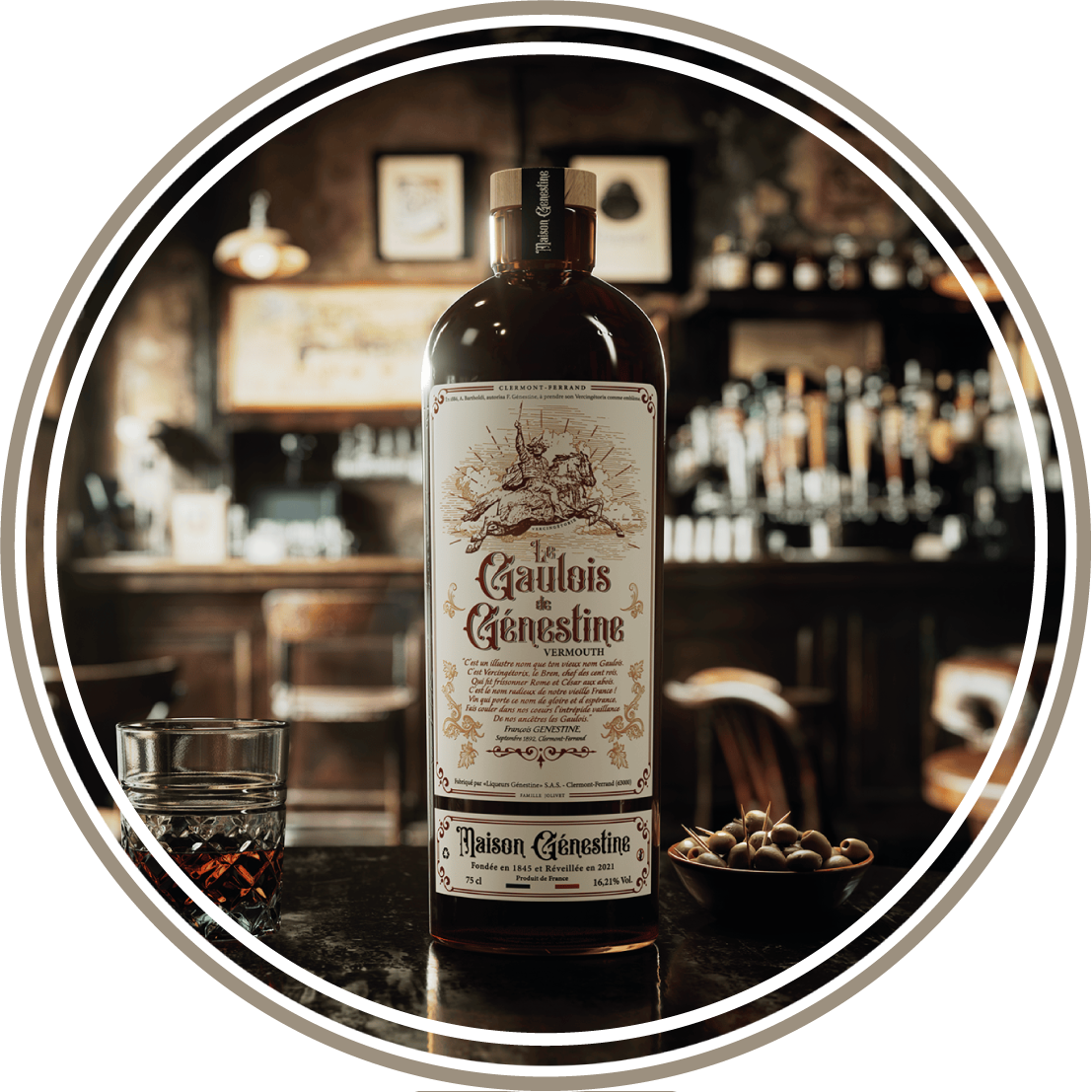 LE GAULOIS de Génestine, est à l’origine du réveil de la Distillerie en 2021. Bouteille, étiquette et logo d’époque nous ont permis de recréer la gamme actuelle tout en nous inspirnt de l’univers du 19 ème siècle...